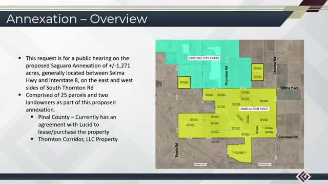 Council holds public hearing on proposed Saguaro annexation covering roughly 1,271 acres; no action taken