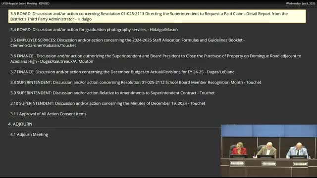 School board directs superintendent to request de‑identified paid‑claims report amid insurance cost concerns