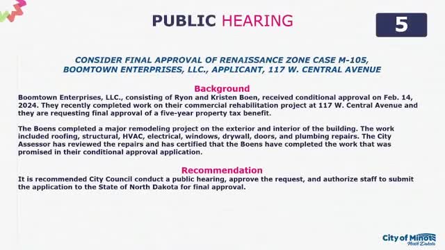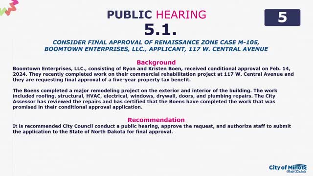 Council approves Renaissance Zone final approval for BoomTown Enterprises (Case M-105)