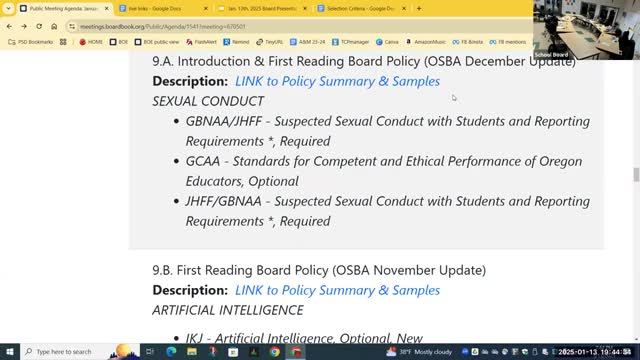 At a glance: Board procedural votes at Parkrose SD 3 work session