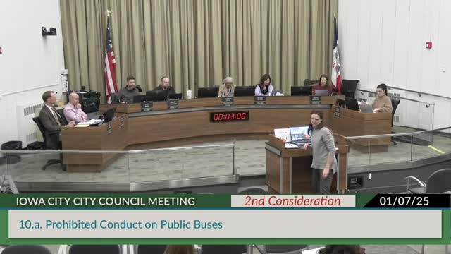 Council waives second reading and adopts ordinance updating prohibited conduct on public buses