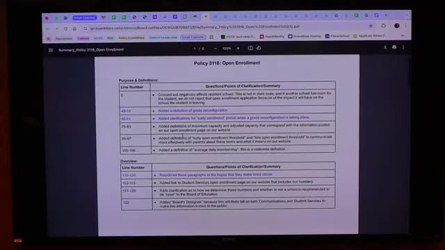 Board considers open-enrollment changes, testing opt-outs and smartwatch rules during policy readings