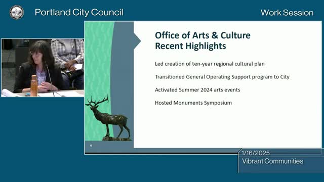 Office of Arts & Culture outlines new grant role, flags arts‑tax erosion and public‑art maintenance gap
