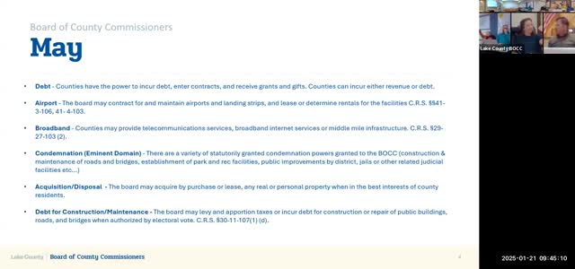 Lake County begins BOCC training, staff urges transparency on recordings and reviews debt, procurement and public records rules