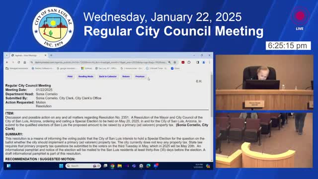 San Luis council approves calling May 20 special election on primary property tax after heated debate