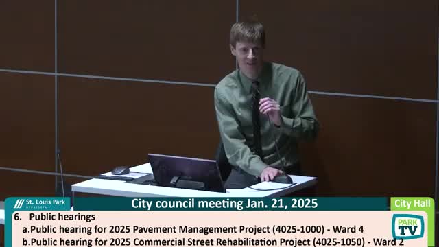 Council holds public hearing on 2025 pavement management project covering Cedar Manor, Westwood Hills and Kilmer Pond