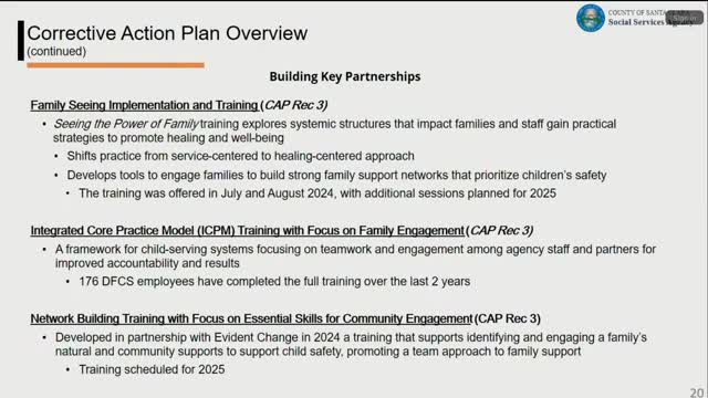 County agencies describe new DFCS legal‑consultation protocol and corrective action plan tied to a five‑year system improvement plan