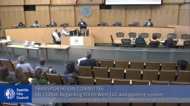 Committee recommends 20‑year permit renewal for Triton West pipeline on Harbor Island