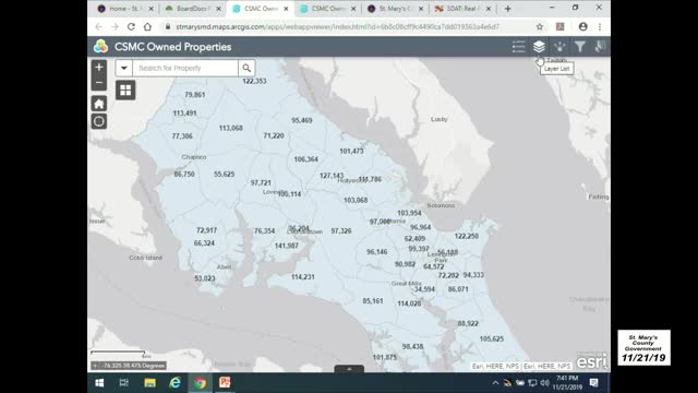 County IT and economic development show layered map and 2015 Census estimates to the YMCA committee
