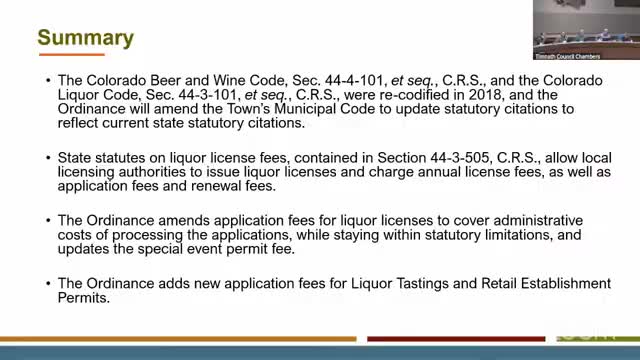 Timnath council adopts new liquor application, special‑event and tasting fees