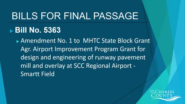 Council approves amendment to airport grant for runway design at St. Charles County Regional Airport (Bill 5363)