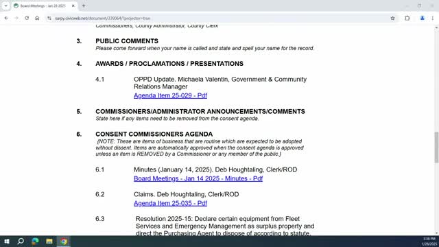 Sarpy County Board of Equalization tables multiple tax-correction items indefinitely