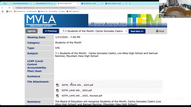 District honors students: two 'Students of the Month' and multiple Central Coast Section champions recognized
