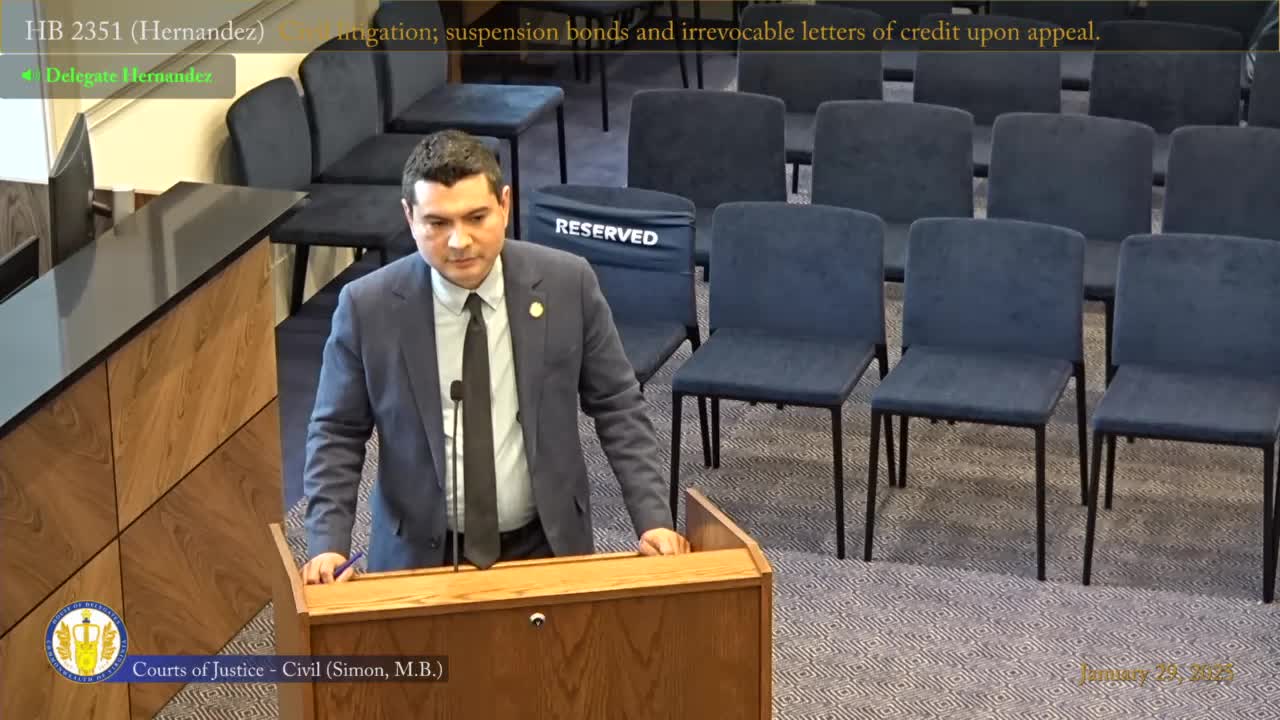 Subcommittee reports bill to remove appeal-bond cap, citing victim compensation and federal parity