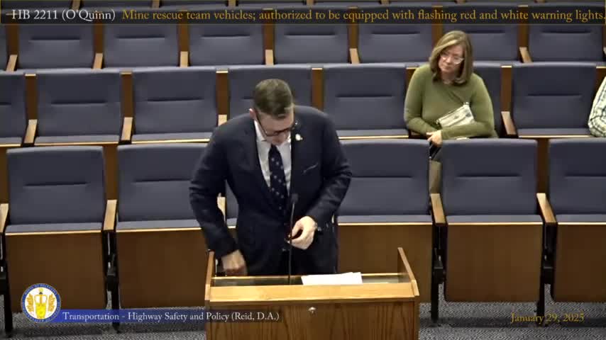 Panel approves bill allowing certified mine rescue vehicles to use red warning lights