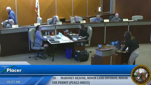 Commission recommends approval of Mahoney rezone, two‑lot split and permit for existing shop; MND adopted and PCCP participation required