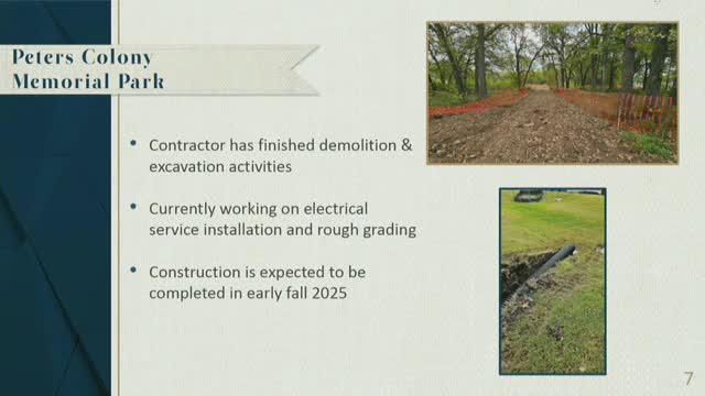 Parks staff outline construction and design timelines for Peters Colony Memorial Park, Trotter Park and multiple playground and trail projects