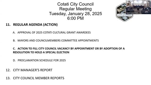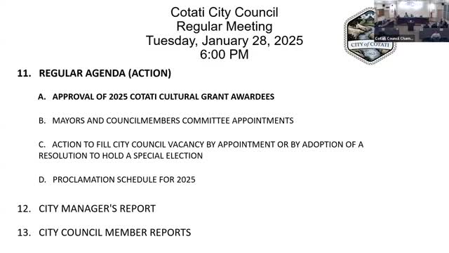 Cotati City Council approves minutes, consent calendar and cultural grants; sets application window to fill council vacancy