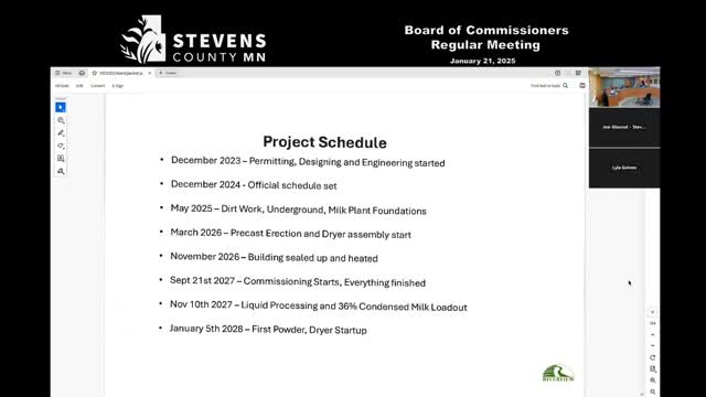 Developer updates Stevens County commissioners on dairy processing plant schedule and outstanding permits