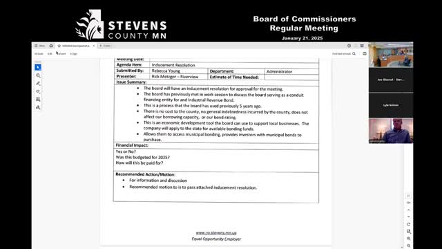 Stevens County board approves inducement resolution to enable conduit financing for industrial project