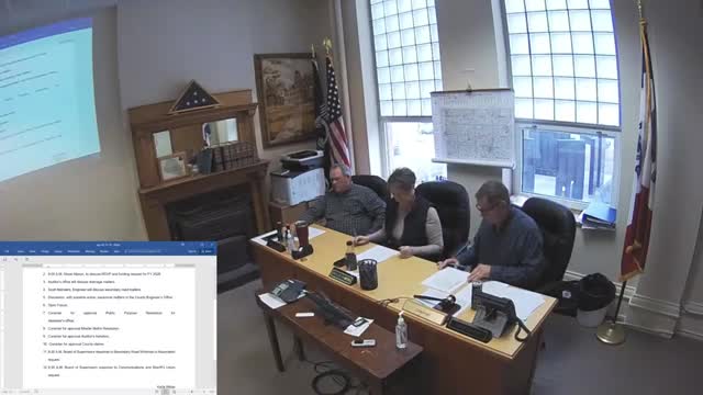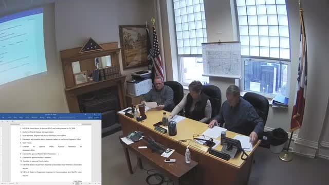 Board approves Master Matrix resolution, auditor transfers and county claims; OKs public-purpose plaque purchase