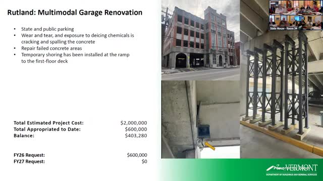 Committee reviews Rutland multimodal parking garage condition; ownership, use and past federal funding noted