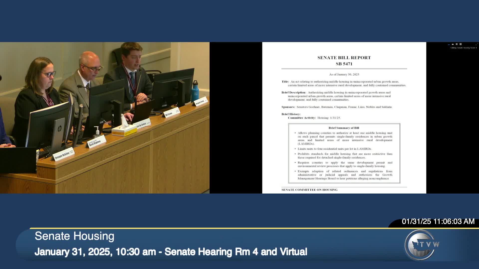 Committee hears bill to authorize middle housing in unincorporated urban growth areas and limited rural 'lammers'