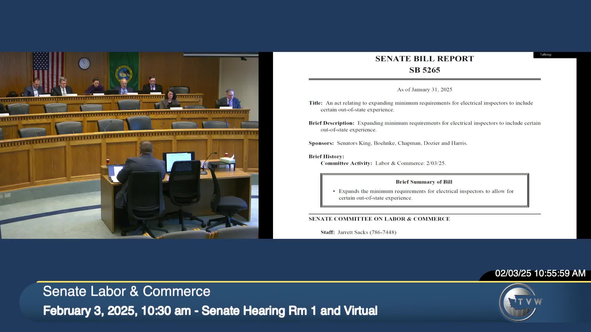 Bill would accept some out‑of‑state experience for electrical-inspector qualifications; cities and unions split