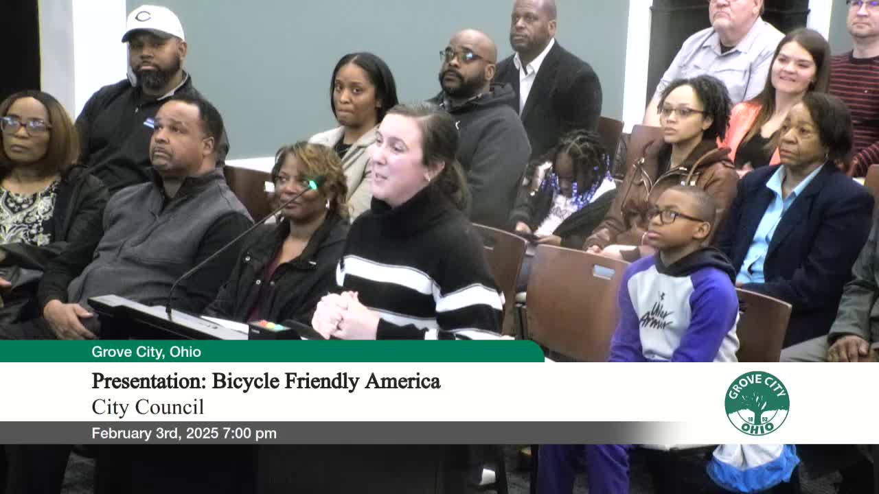 Grove City wins Bicycle Friendly Community designation; staff outline active-transportation plan and Broadway corridor study