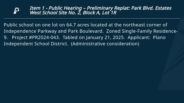 Commission approves three Plano ISD preliminary replats for school sites, 5–0