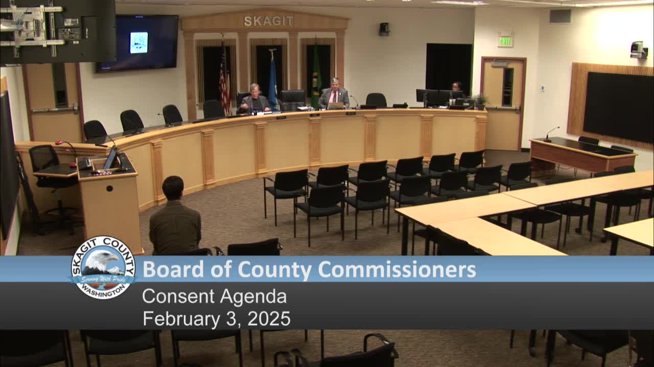 Skagit County commissioners approve consent agenda including service agreements, vendor contracts
