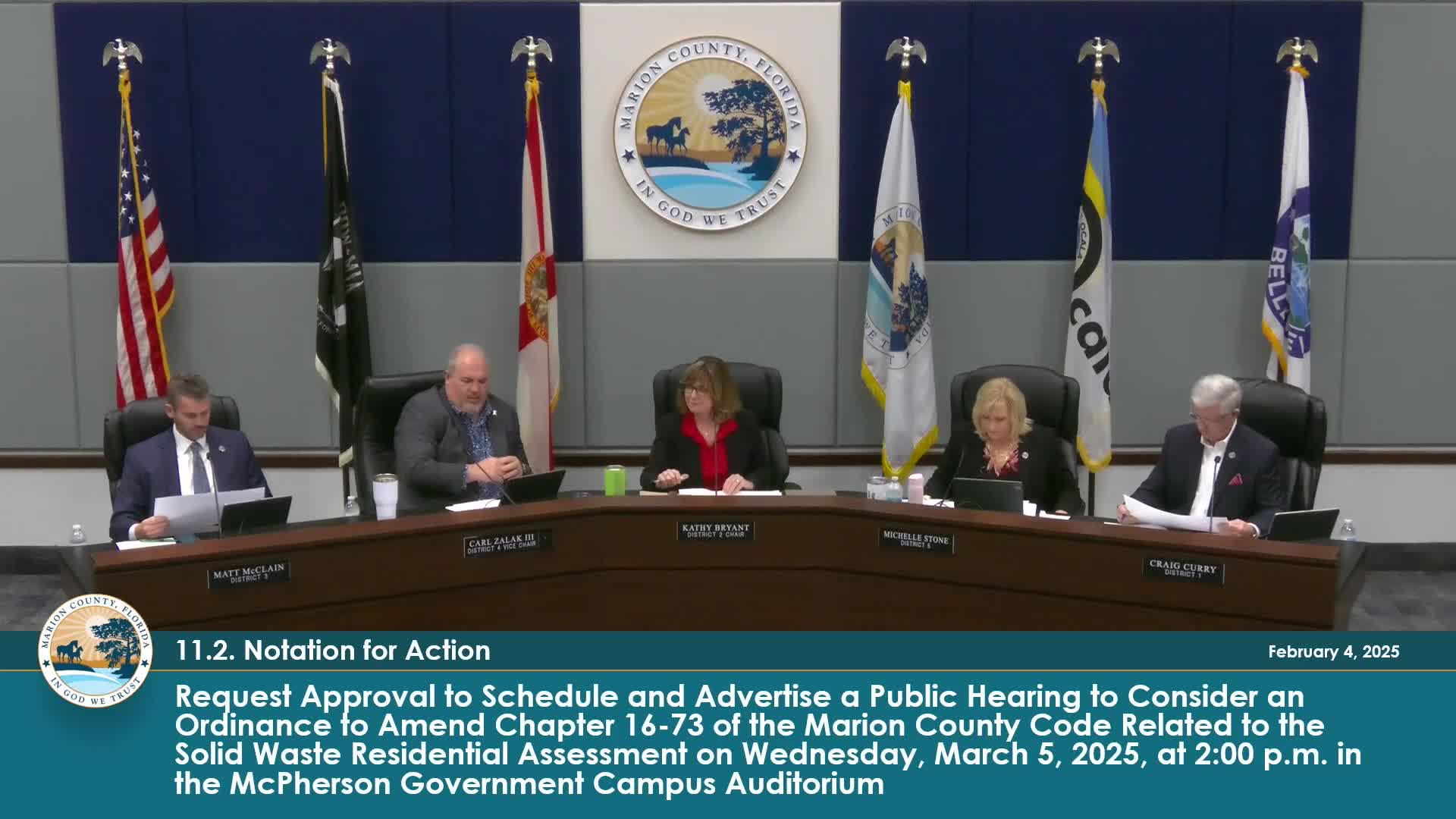 Commissioners schedule March hearing on Solid Waste residential assessment after staff presents reserve options