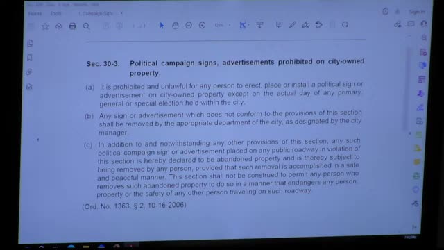 Council tables campaign‑sign and temporary‑sign amendments after debate on early‑voting window and enforcement