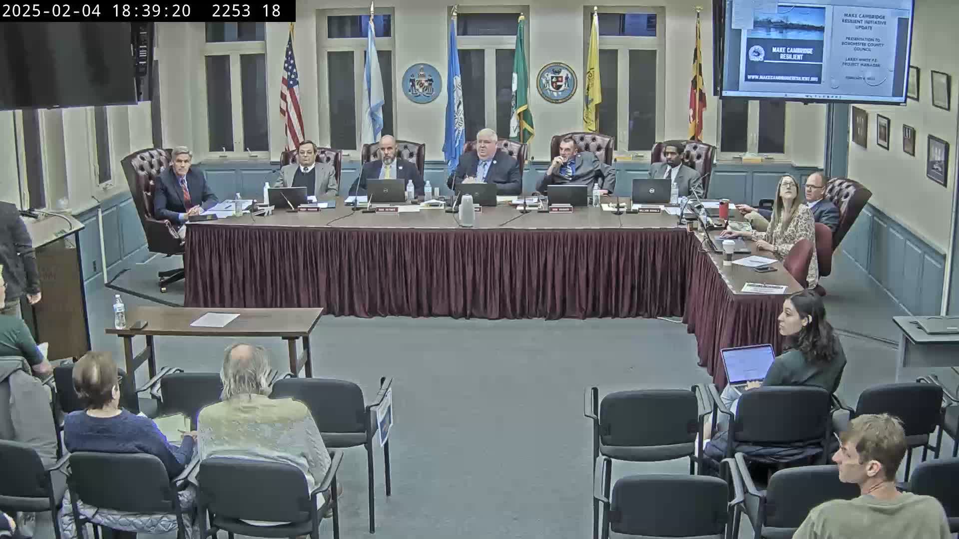Cambridge resiliency project seeks county tie‑in; residents raise concerns about berm heights and property impacts