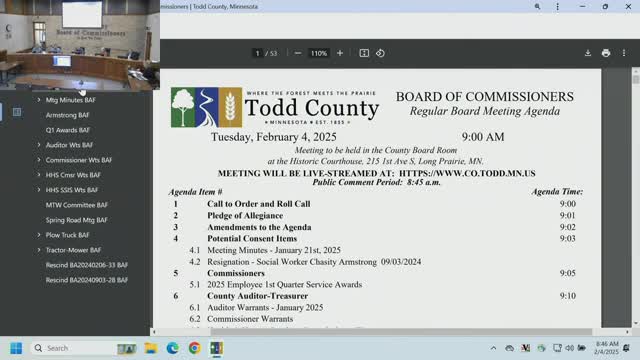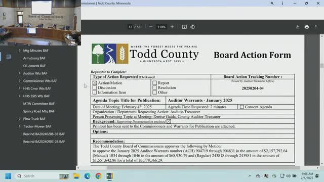 Todd County commissioners approve multiple warrants, update committee assignments and rescind two prior board actions