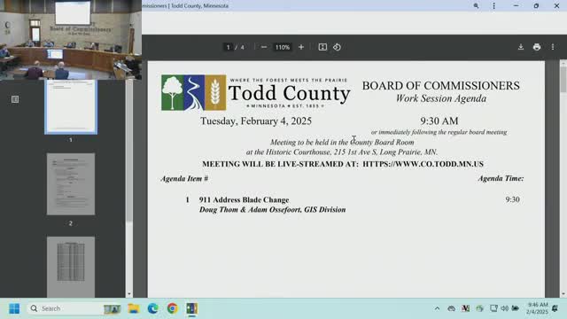 Todd County public works to propose switch from vertical to horizontal 911 address blades; board asks for formal action at next meeting