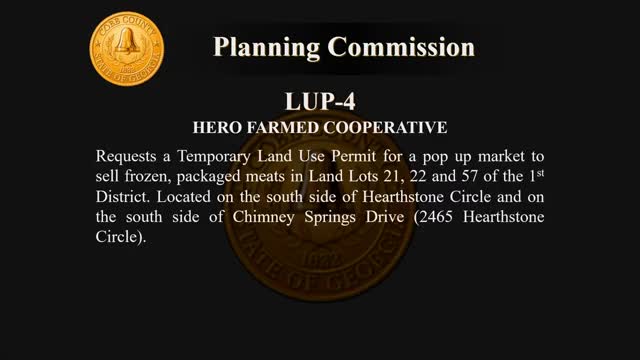 Neighbors, East Cobb Civic Association oppose Hero Farms' request to use Chimney Springs common area for pop‑up meat market; commission recommends denial