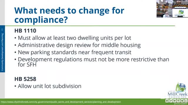 Mill Creek staff outline state-mandated 'middle housing' code changes, timeline for updates