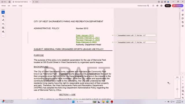West Sacramento commission reviews proposed Memorial Park league use policy; music, banners and locked fields draw debate