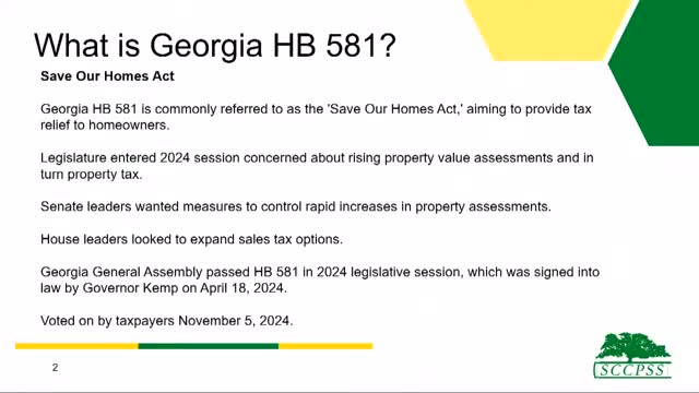 Savannah-Chatham board debates whether to opt into state’s HB 581 homestead exemption; leans toward keeping local Stevens Day law