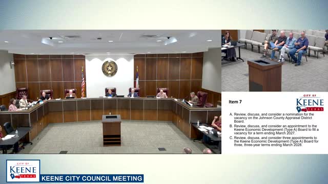Keene council nominates Peter Svensson to Johnson County appraisal board; several local board appointments approved, one contested Type A vacancy tabled