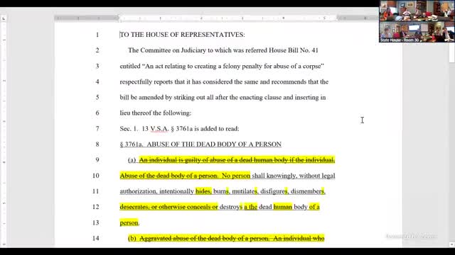 Committee debates rewording and penalties for desecration, concealment-of-body offenses