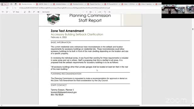 Commission recommends tightening accessory building setbacks; public hearing closes