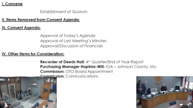 Commission approves consent agenda including auditor's monthly report for January