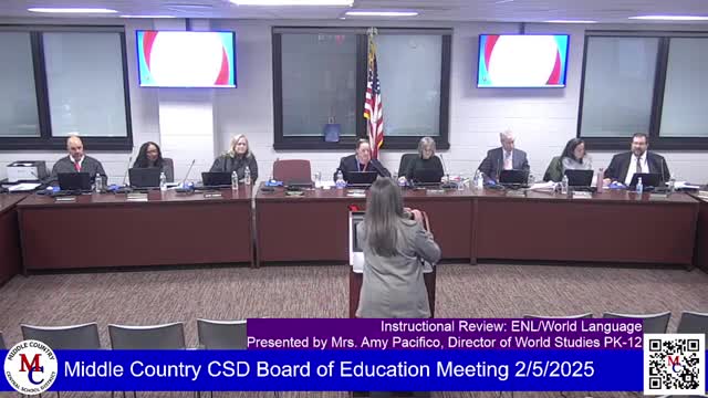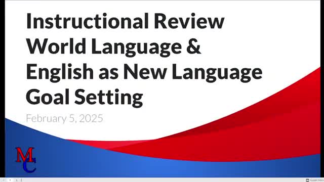 District outlines world‑language rollout and English‑as‑a‑new‑language services; board asks about elementary language offerings and assessment results