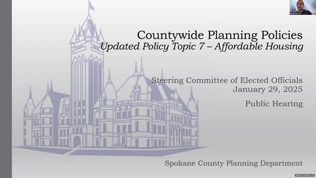 Spokane County steering committee adopts recommended countywide planning policies on housing