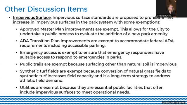 Mercer Island commission advances draft park-zone rules covering signs, trails, scoreboards and impervious-surface limits