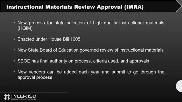 Tyler ISD curriculum staff explain new Texas IMRA process and funding incentives