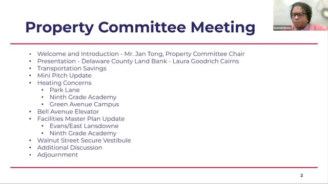 Property committee reviews transportation savings, mini-pitch sponsorship, heating fixes, elevator grant and construction timelines
