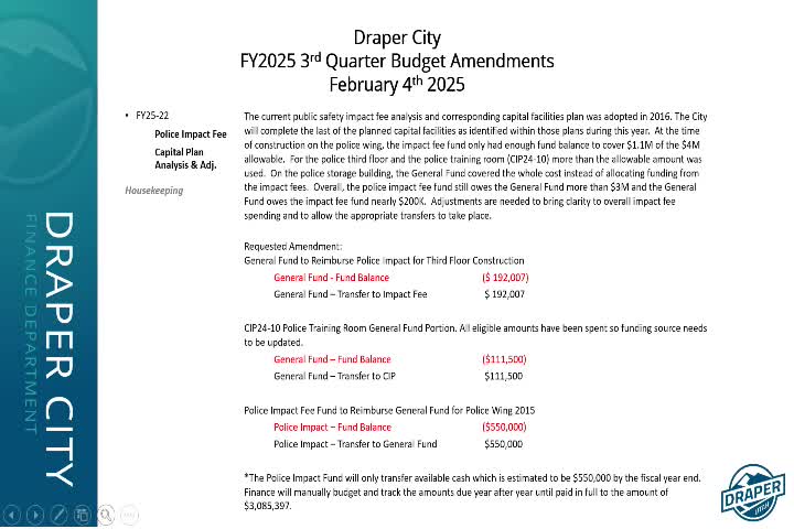 Draper City staff presents 3-year budget framework and options to preserve expiring bond capacity for community center